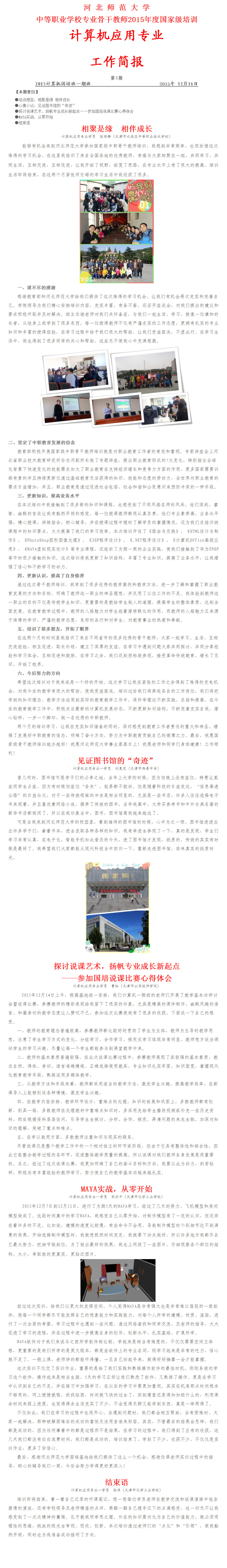 2015 年全国中职学校“计算机”专业一期班骨干教师培训工作简报(第五期)